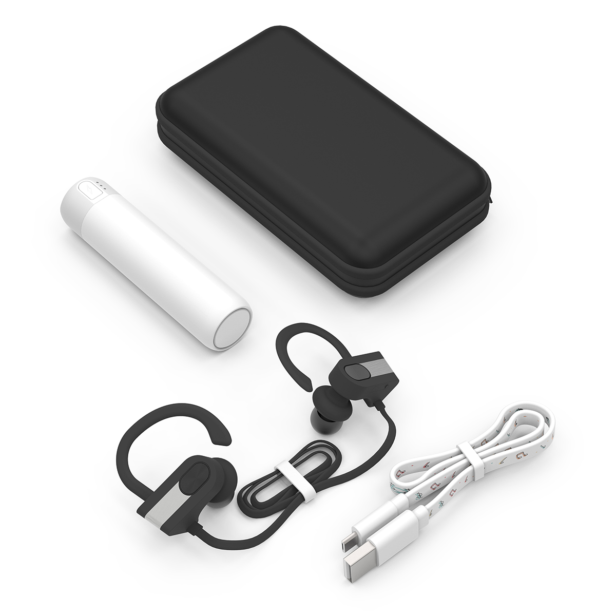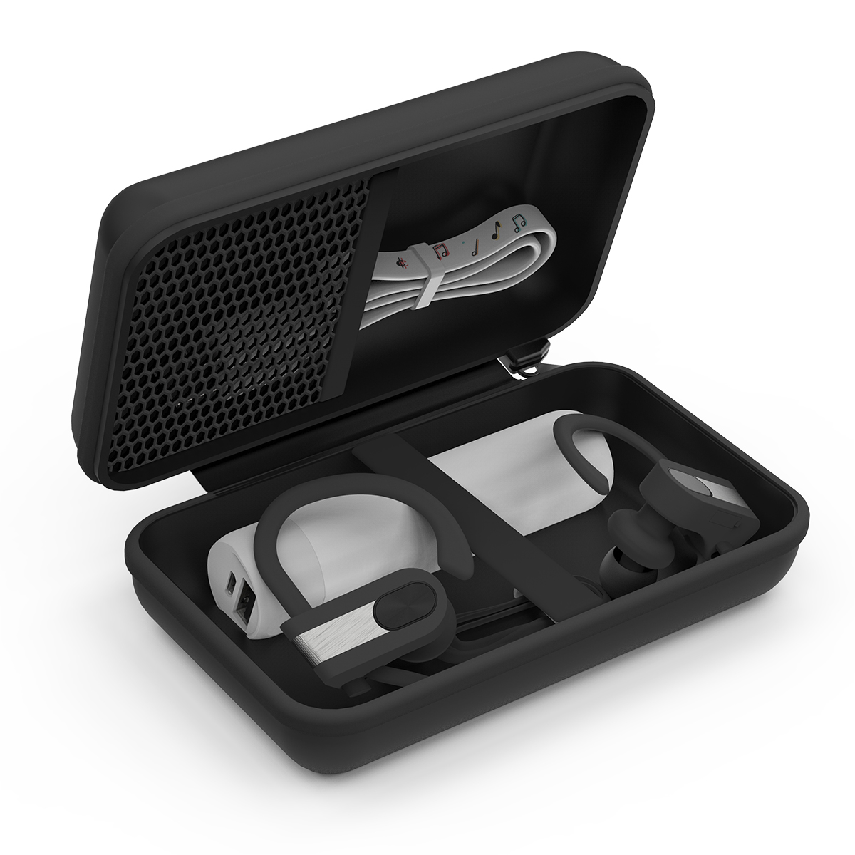PowerBuds: Black with Gray. • Capsule: White with Gray. • Cable: White With Music Notes.