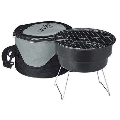 • The portable BBQ grill has a 9" top grilling area, an insulated cooler bag, and a 39" removable and adjustable shoulder strap.