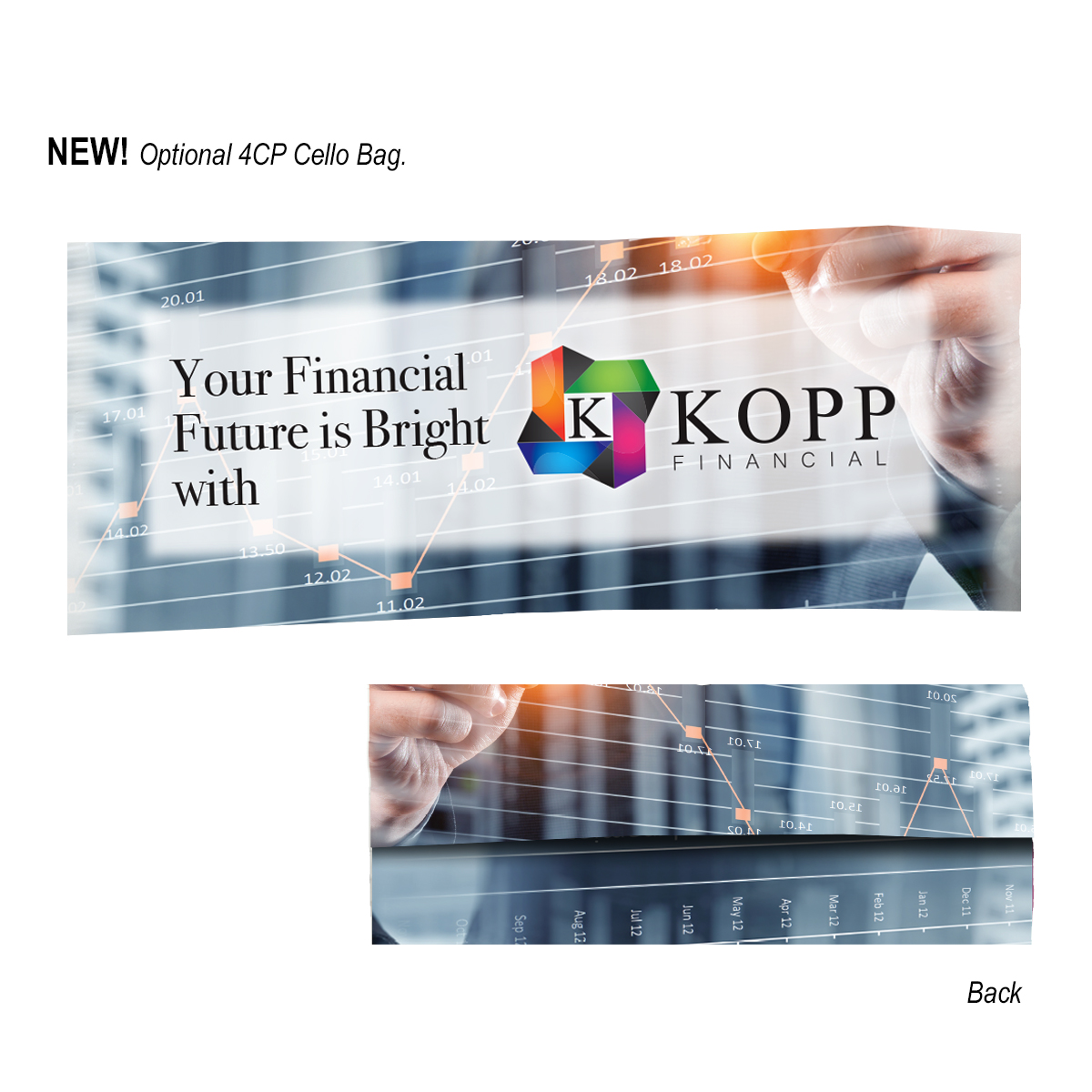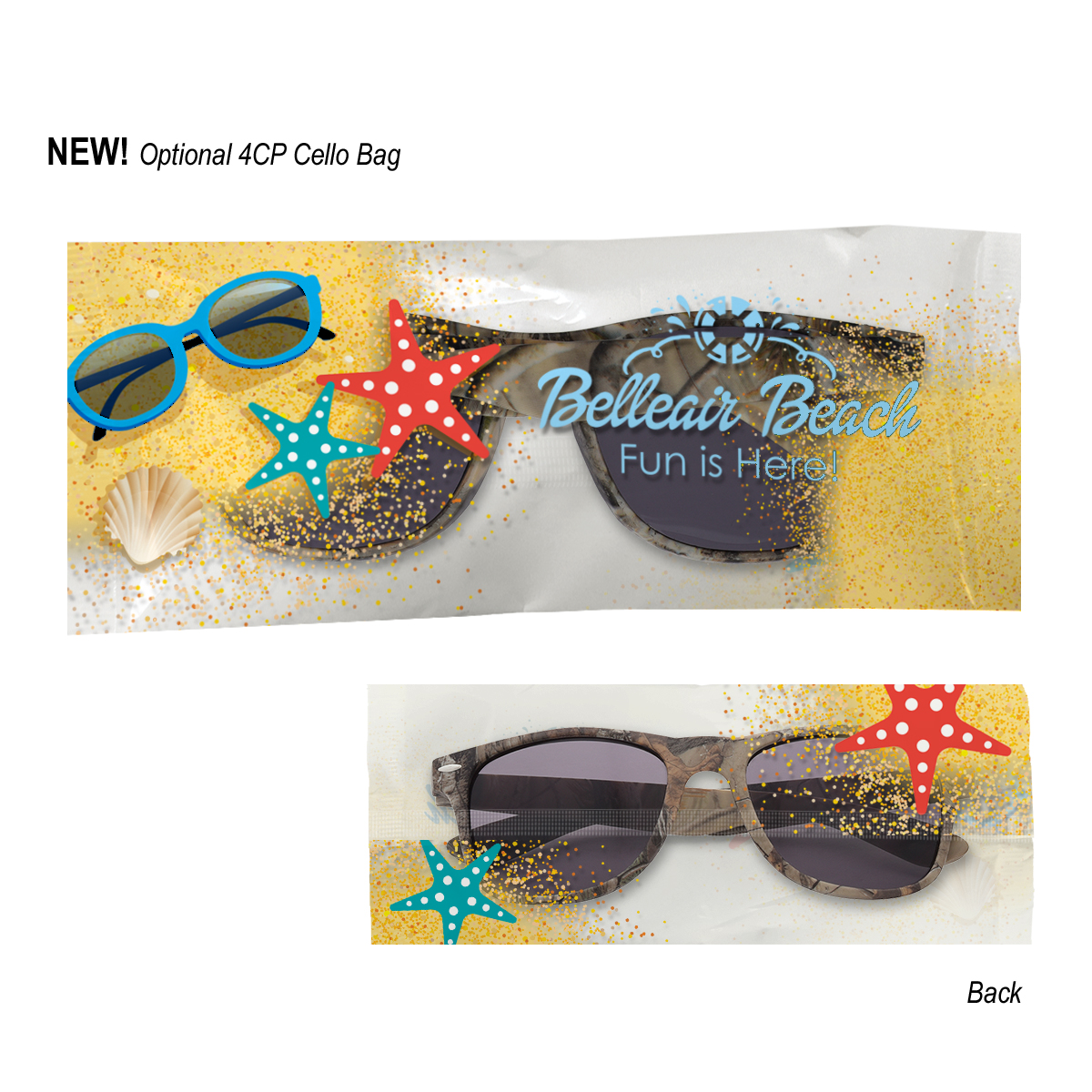 4CP Cello Bag: Add $50.00(G) set up charge plus .30(G) per piece. 4-color process on a white or clear cello bag. Must specify white or clear #4CPCELLO on PO. Choose from one of our stock designs or create your own custom design! 250 piece minimum. Production time for 4-Color Process Cello Bag is 5 to 7 days after proof approval.