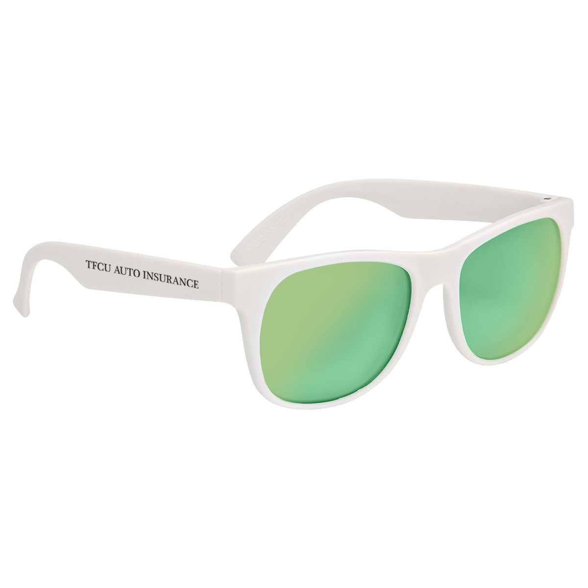 White with Blue, Green, Red, Silver or Yellow Mirrored Lenses.