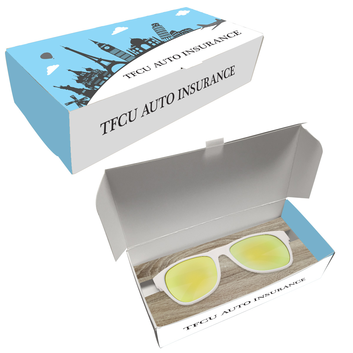 SGBA: Add $60.00(G) set up charge plus $2.50(C) per piece. Price includes 4 color process on box and insertion of product into box.