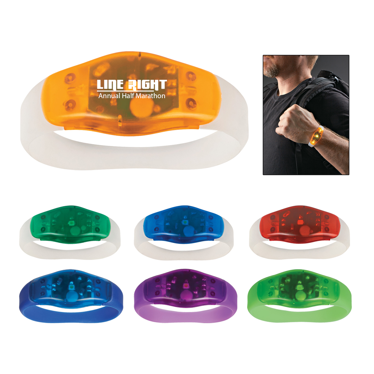 Blue, Lime Green or Purple, all with Matching Band. Clear Band with Blue, Red, Green or Orange Trim.