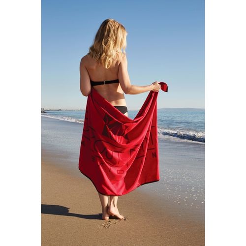 • 45" x 60", 100% polyester blend that repels sand. Dries quickly. Allergen-free. Rolls up easily, with a black woven wrap with Velcro. 5" wide wrap can also be embroidered - call for pricing and details.