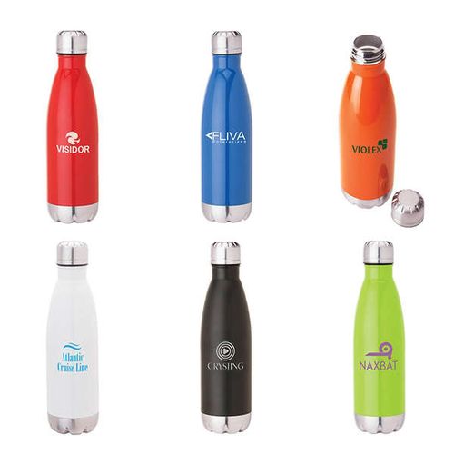 • Solana stainless steel double wall vacuum bottle has a bright painted finish, screw top with silicone seal and will keep your beverage hot for 12 hours or cold for 24 hours. This bottle comes with a copper lining and 304 (18/8) steel inner and outer wall. Custom packing available for an additional charge.