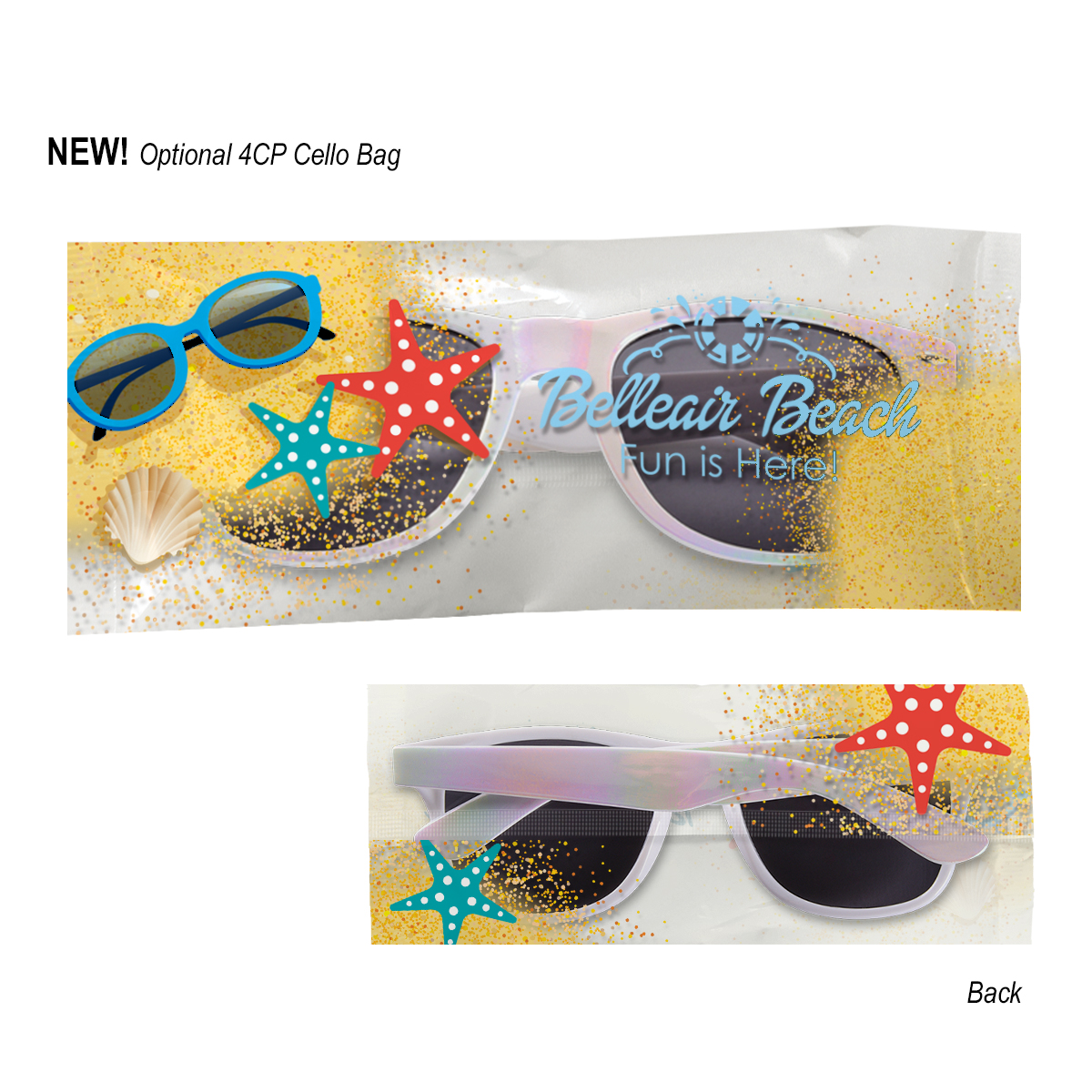 4CP Cello Bag: Add $50.00(G) set up charge plus .30(G) per piece. 4-color process on a white or clear cello bag. Must specify white or clear #4CPCELLO on PO. Choose from one of our stock designs or create your own custom design! 250 piece minimum. Production time for 4-Color Process Cello Bag is 5 to 7 days after proof approval.