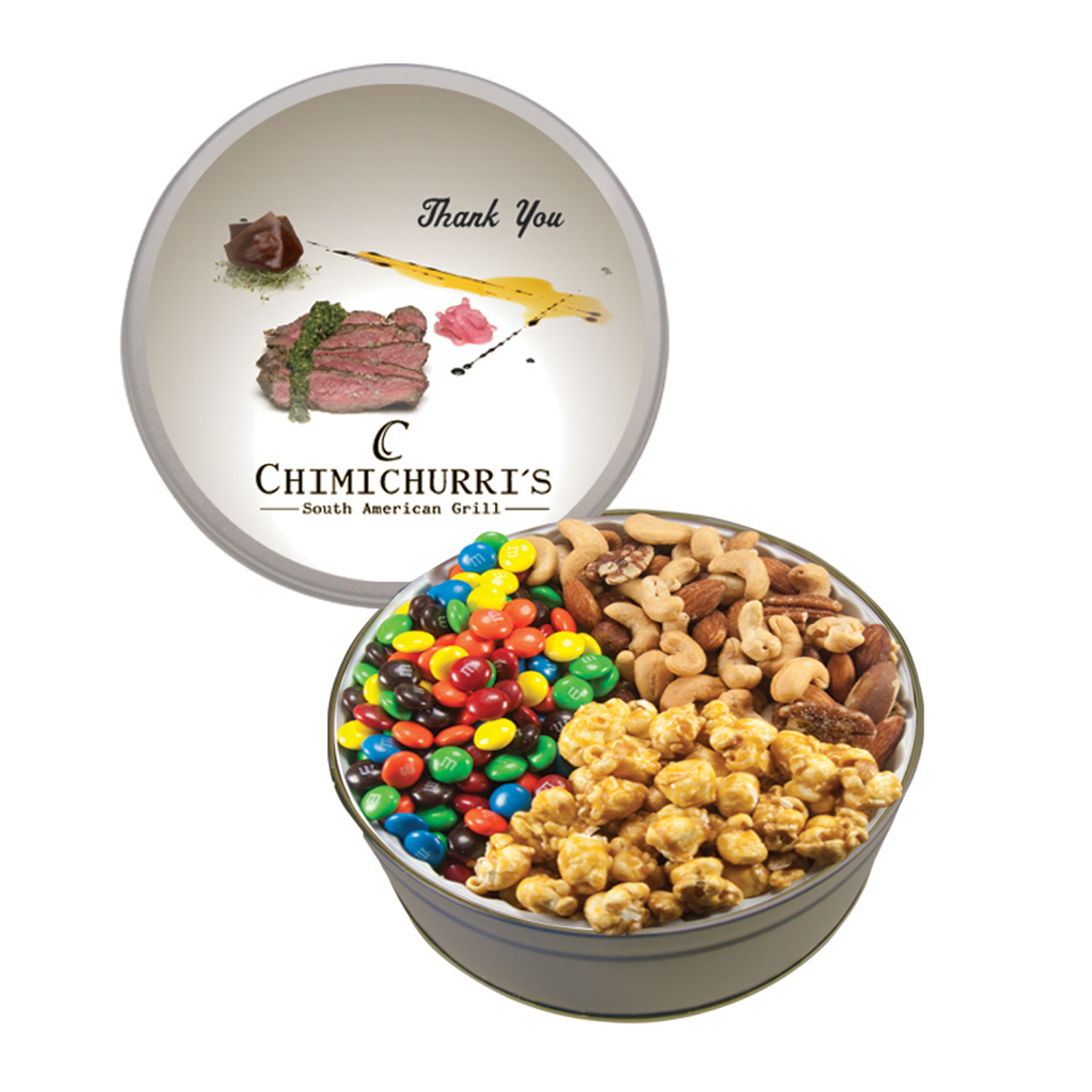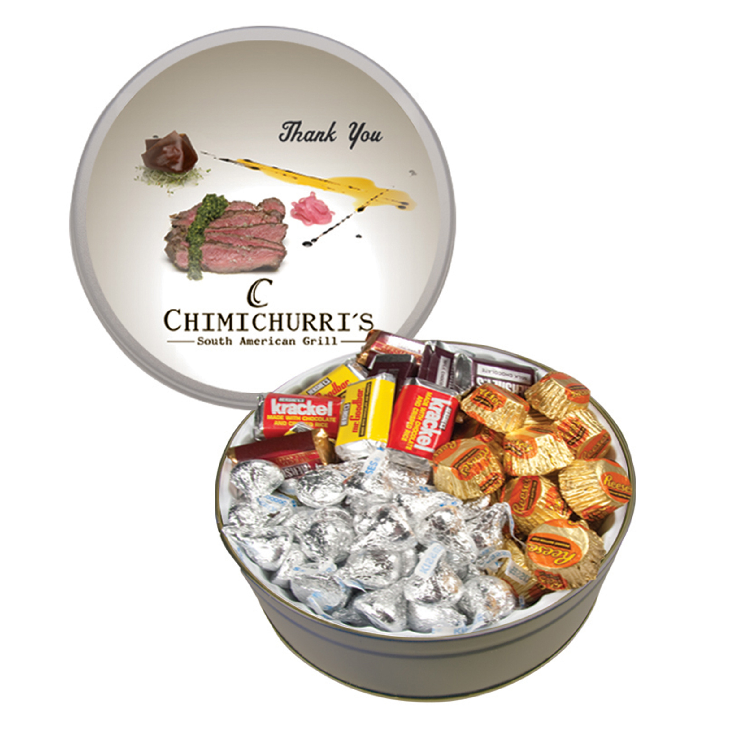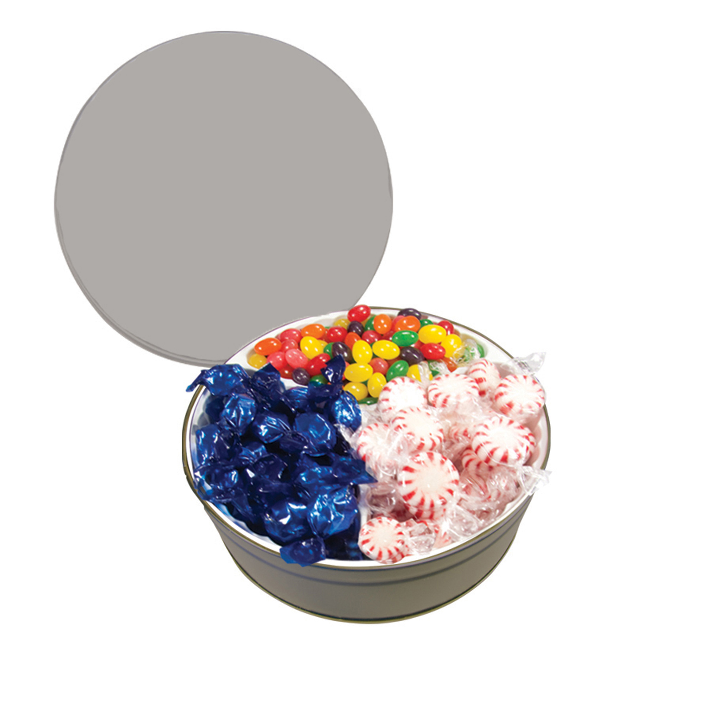 $50(v). Price includes one color direct imprint on the lid of the solid colors and a greeting card for the designer tins. Two-four color imprint, add $0.60(v) plus an additional setup. PMS color match for direct imprint $60(v). Add a laminated decal $0.75(v)