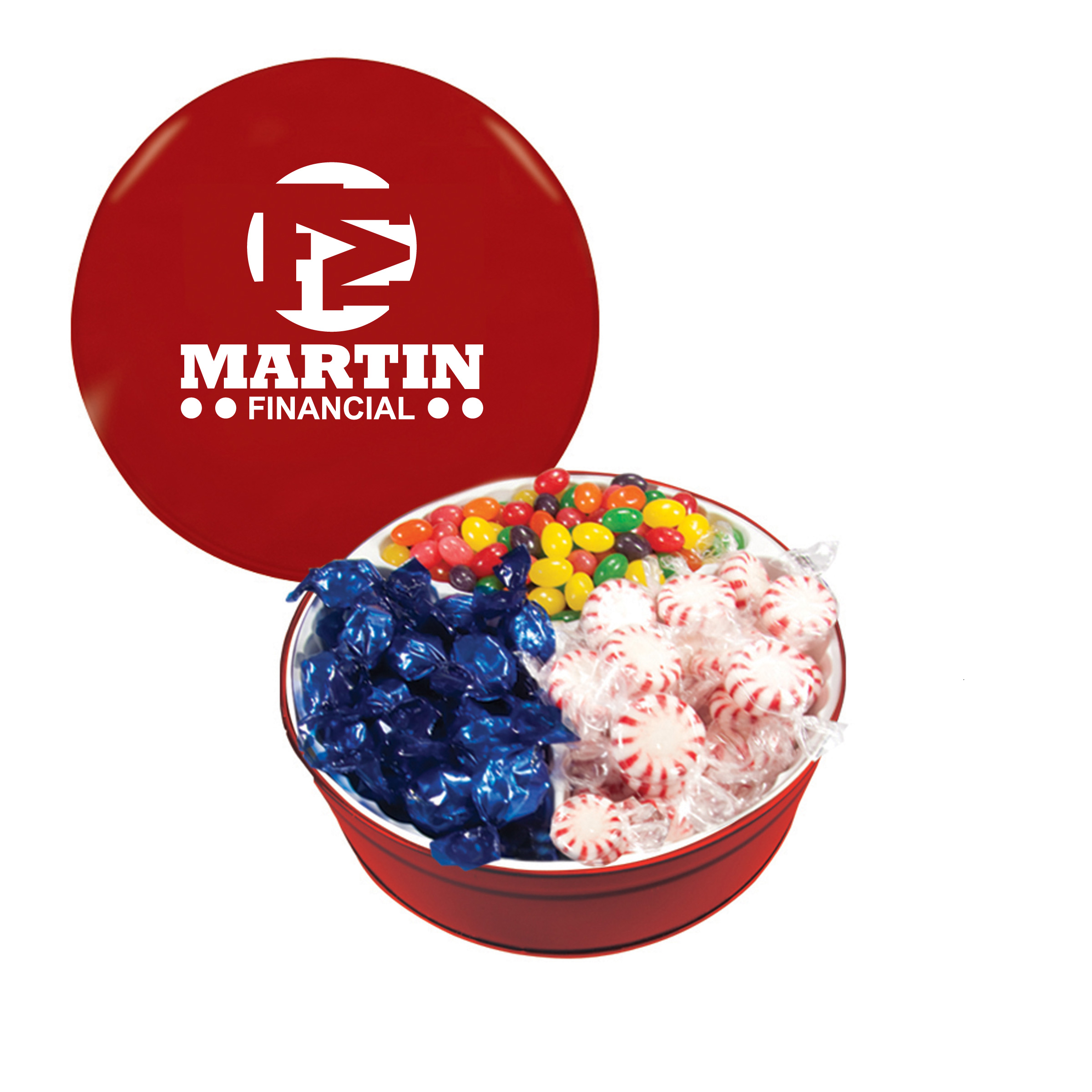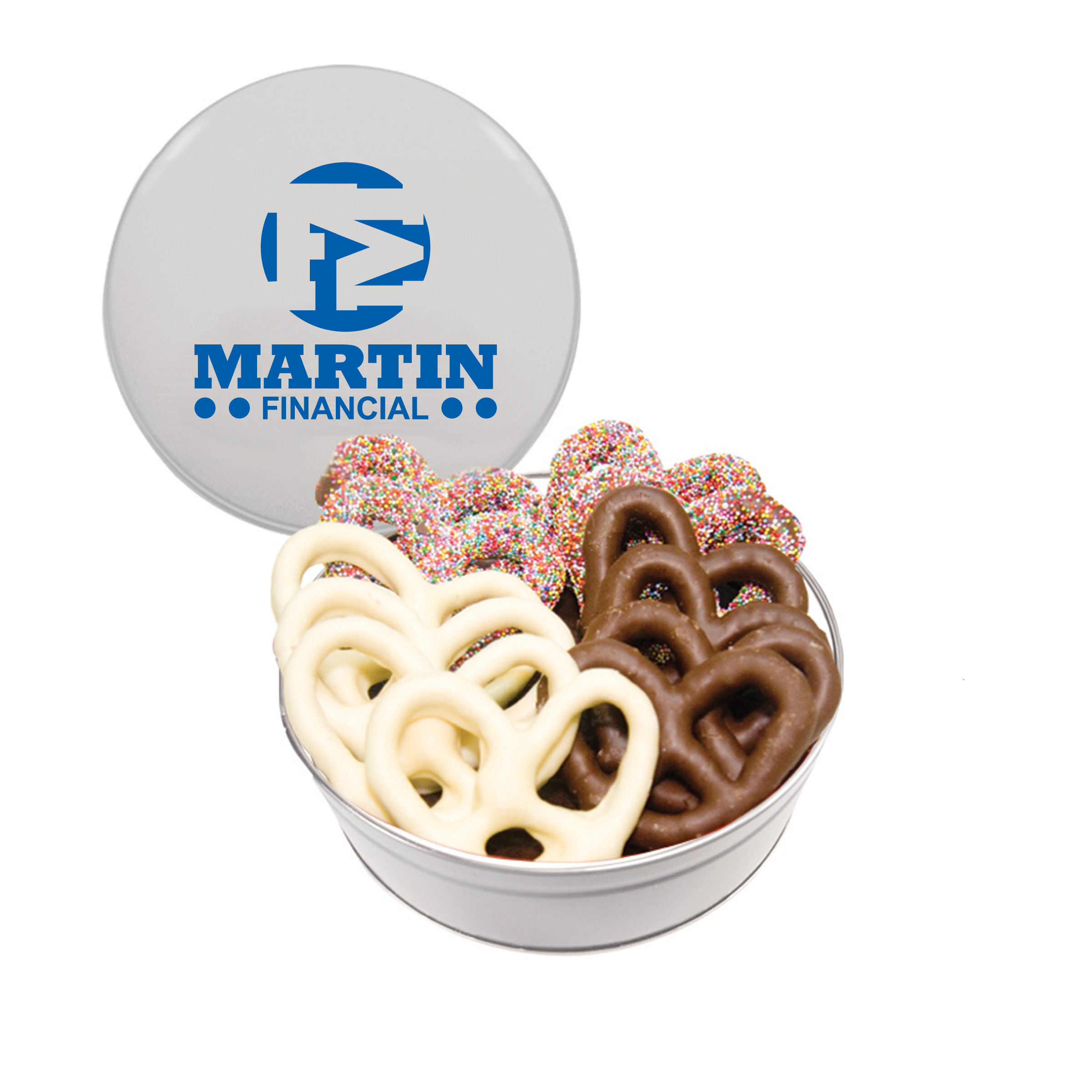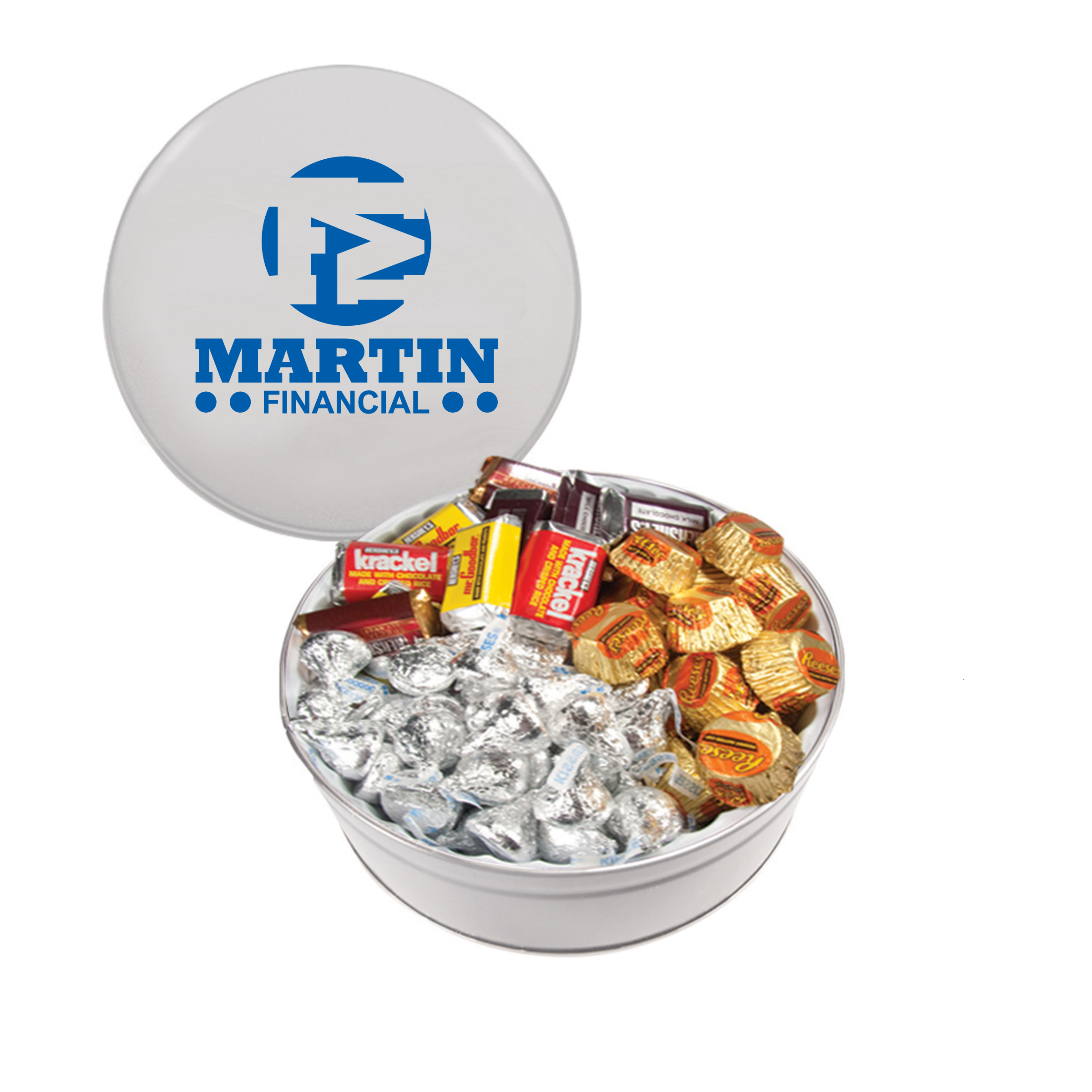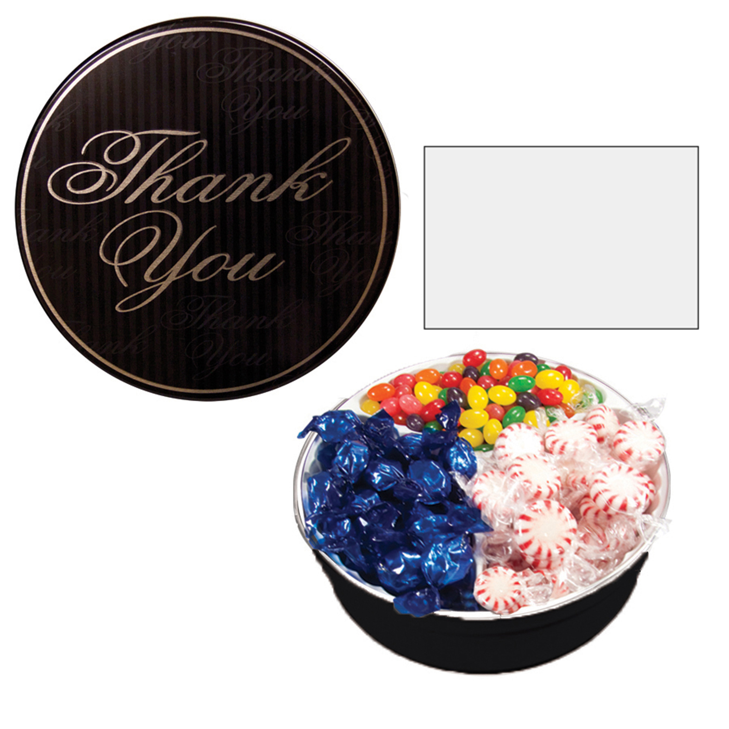 $25(v). Price includes one color direct imprint on the lid of the solid colors and a greeting card for the designer tins. Two-four color imprint, add $0.60(v) plus an additional setup. Add a laminated decal $0.75(v)