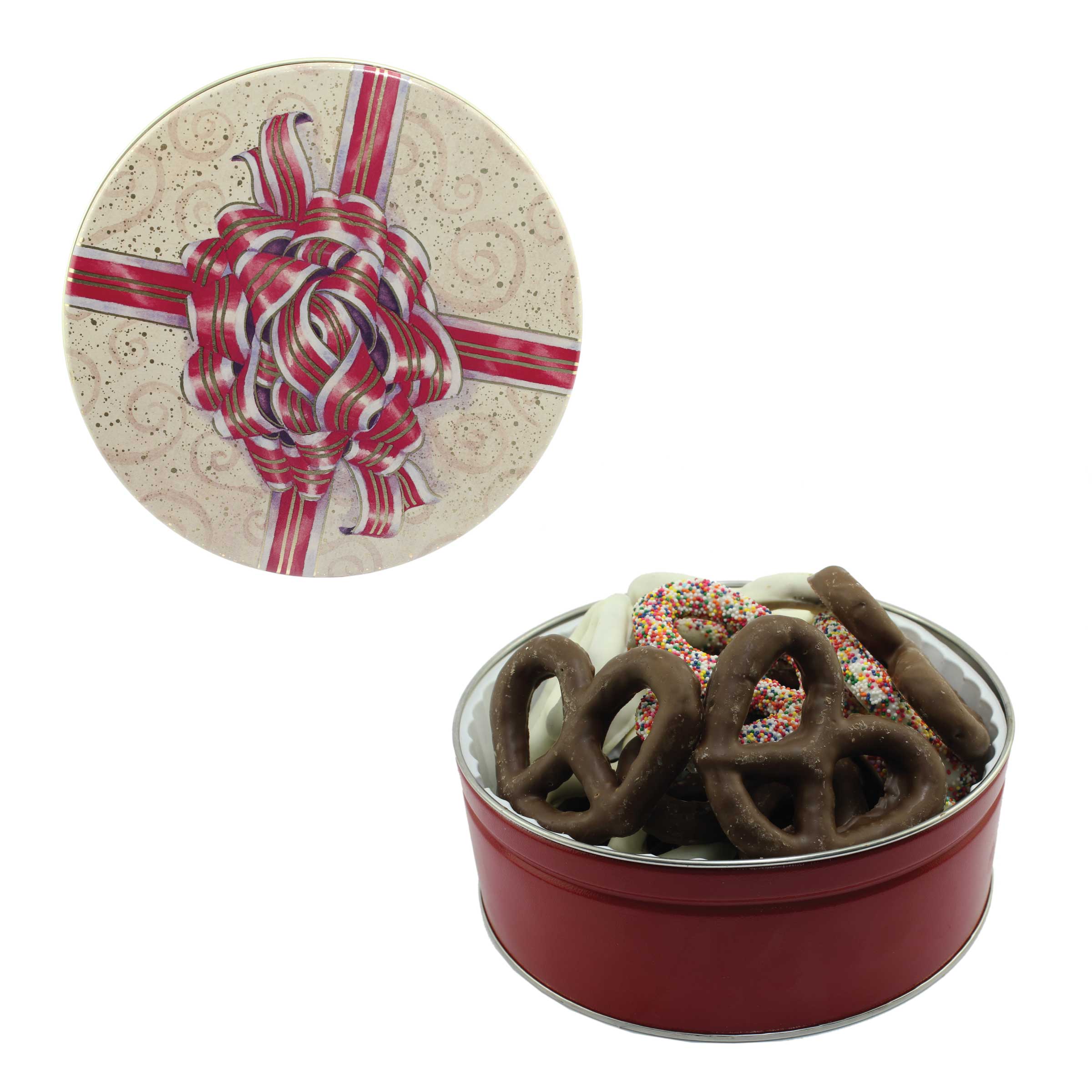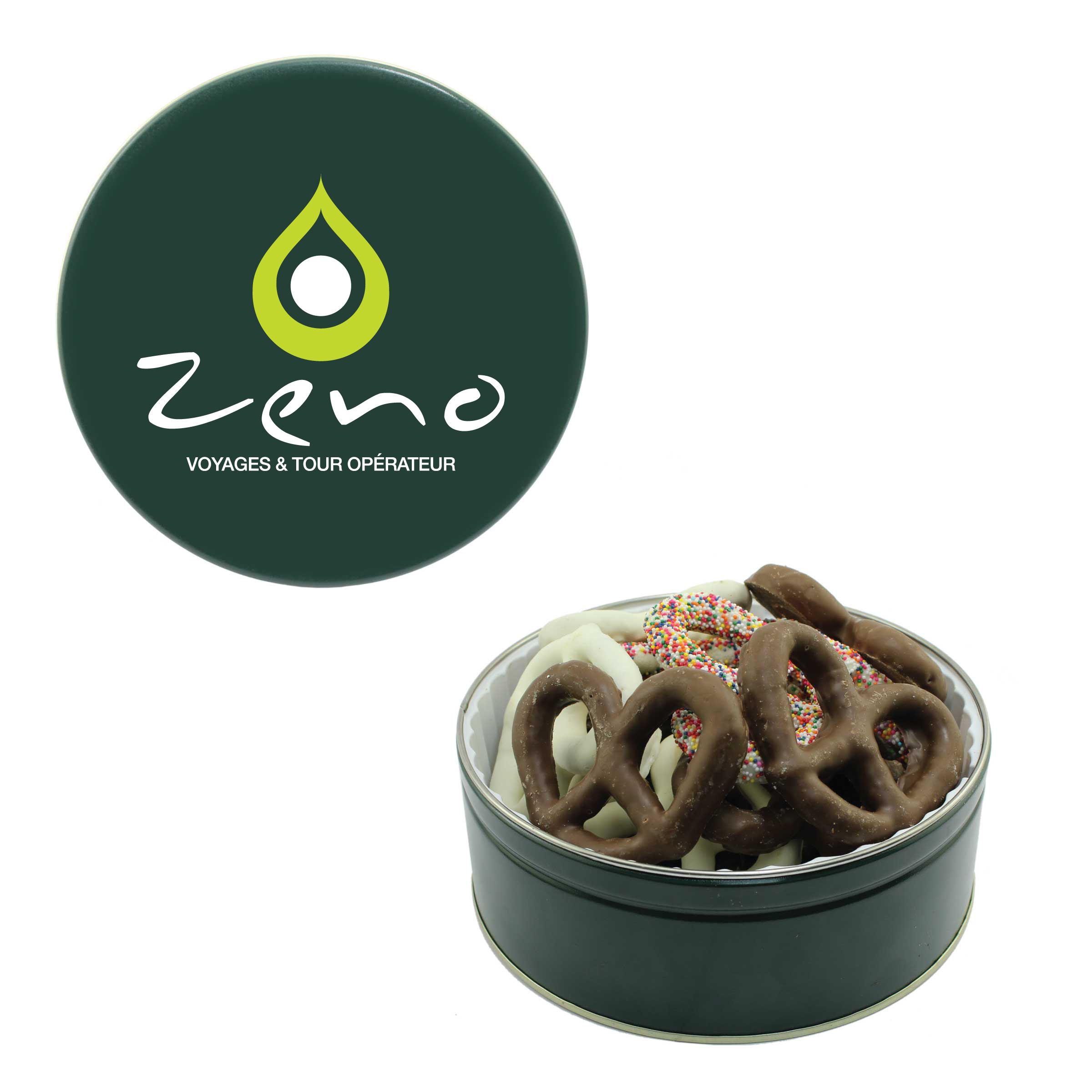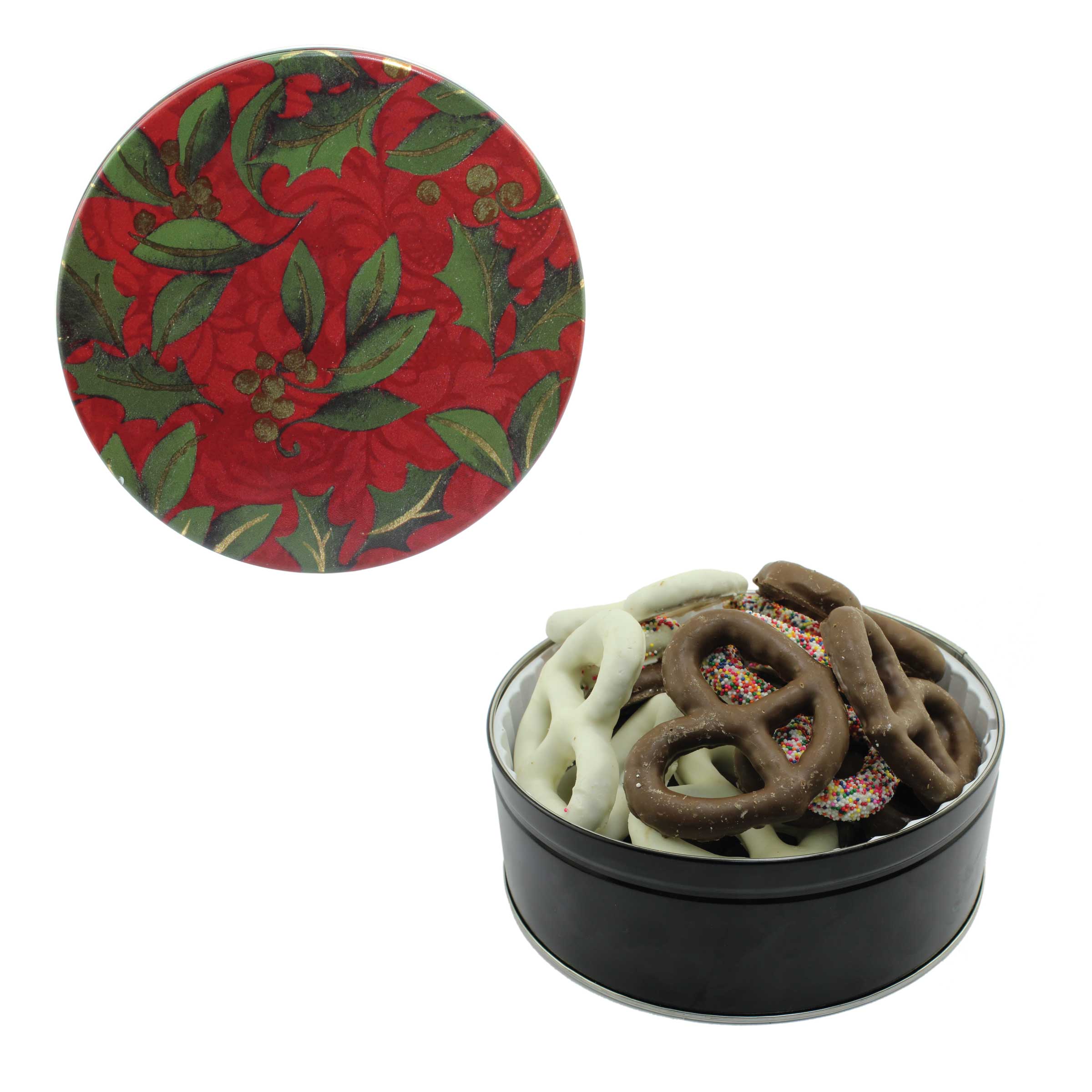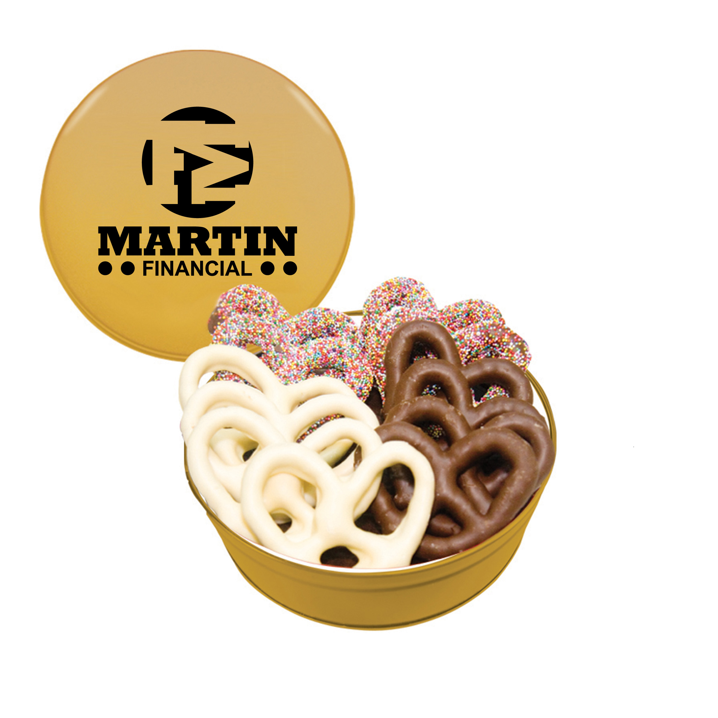 $25(v). Price includes one color direct imprint on the lid of the solid colors and a greeting card for the designer tins. Two-four color imprint, add $0.60(v) plus an additional setup. Add a laminated decal $0.75(v)
