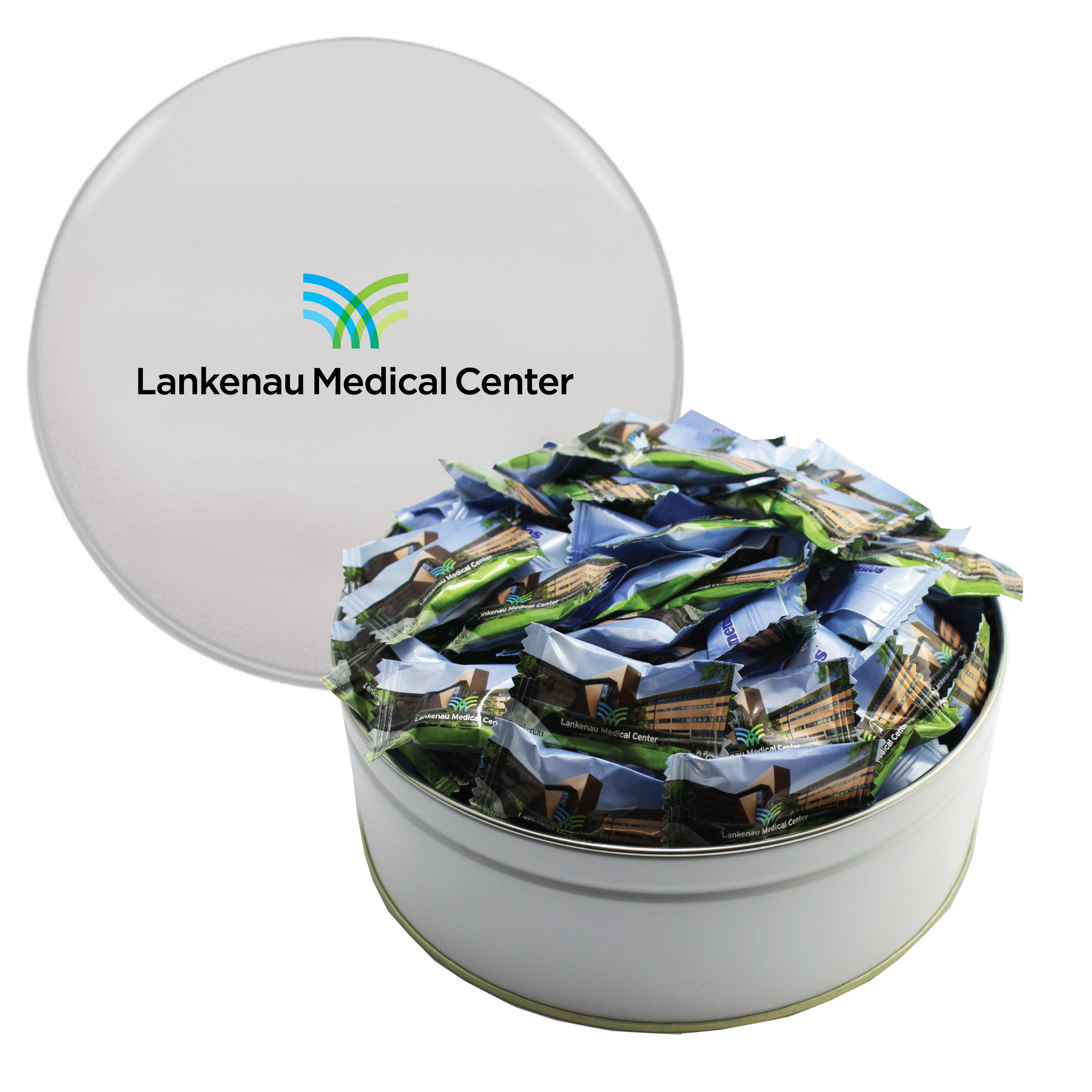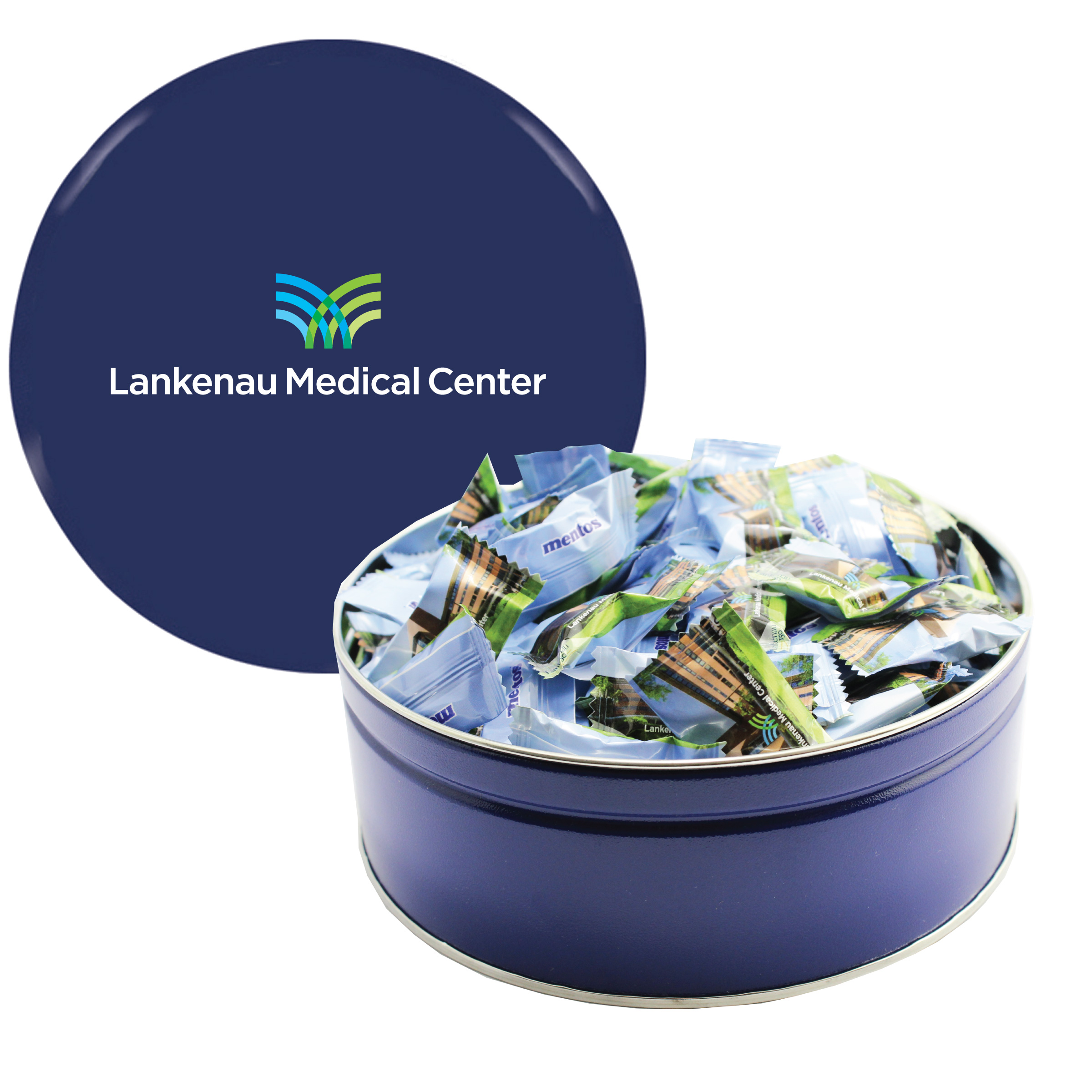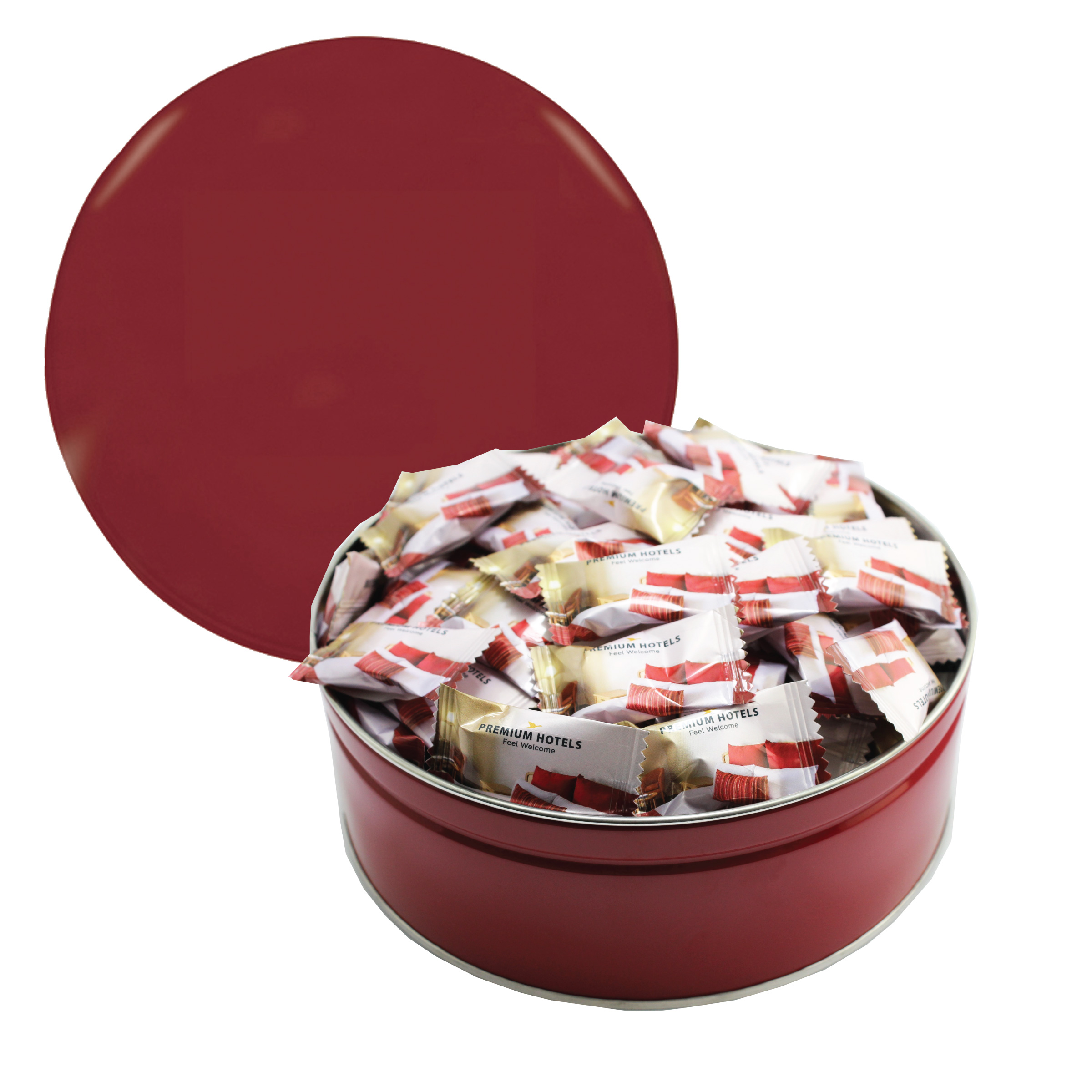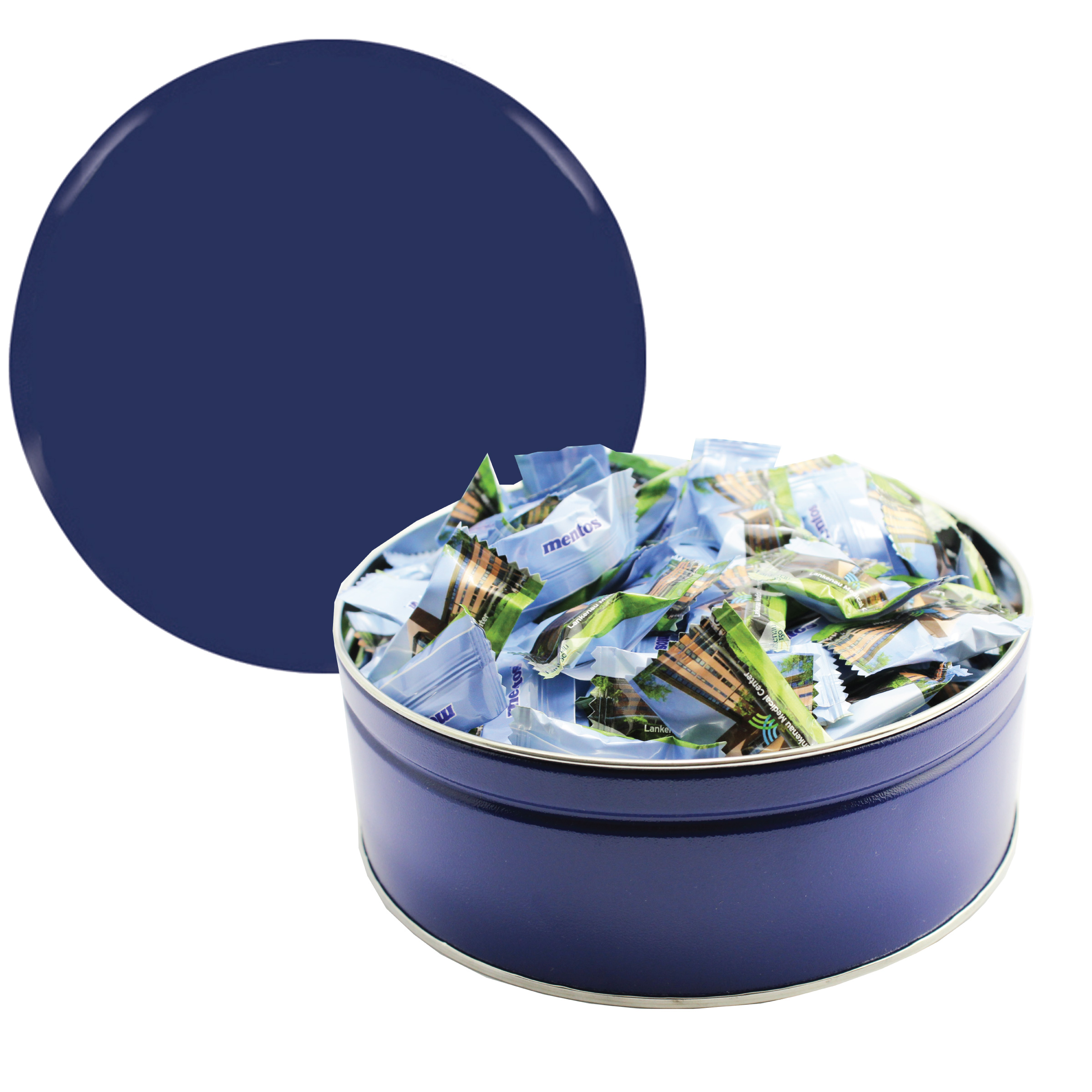 $85(v). Price includes custom wrapper on mints with one color direct imprint on the lid of the solid colors or a greeting card for the designer tins. Two-four color imprint, add $0.60(v) plus an additional setup. PMS color match for direct imprint $60(v). Add a laminated decal $0.75(v)