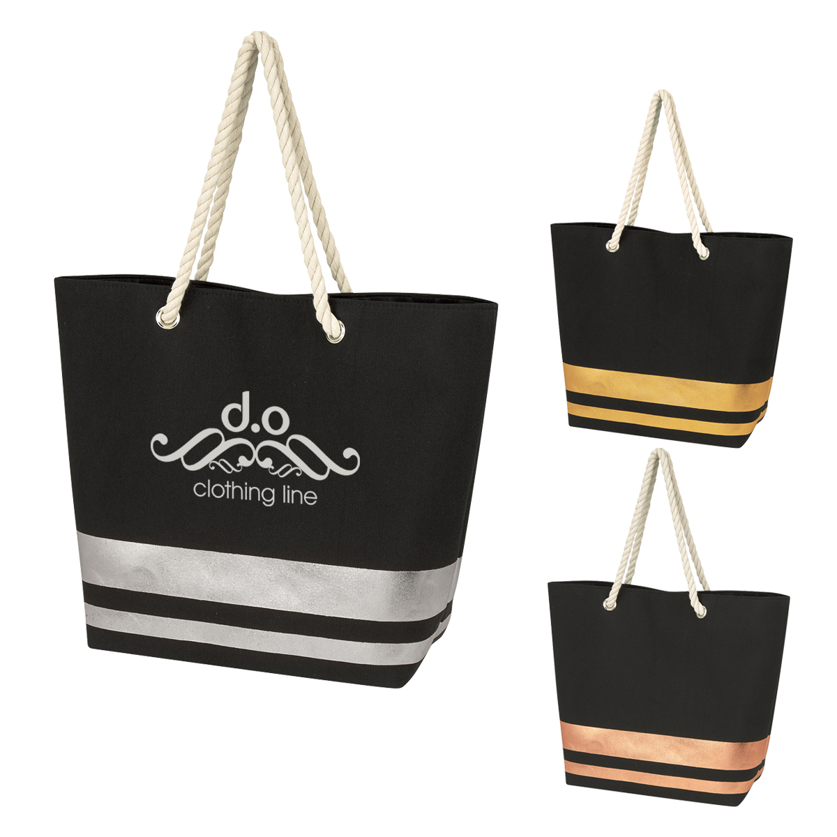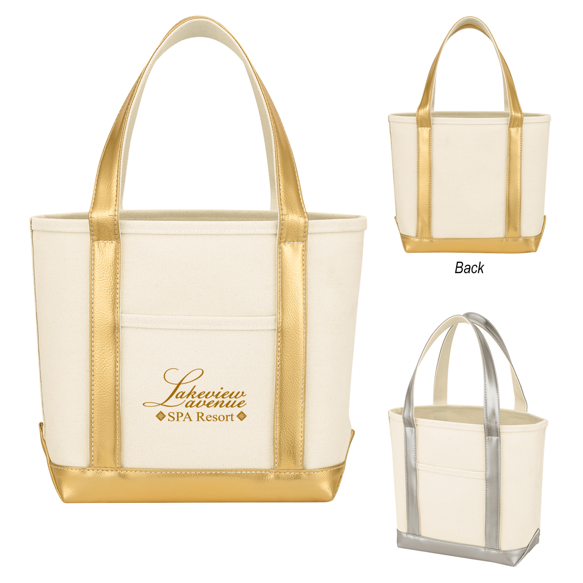 Metallic Accent Heavy Cotton Canvas Boat Tote Bag
