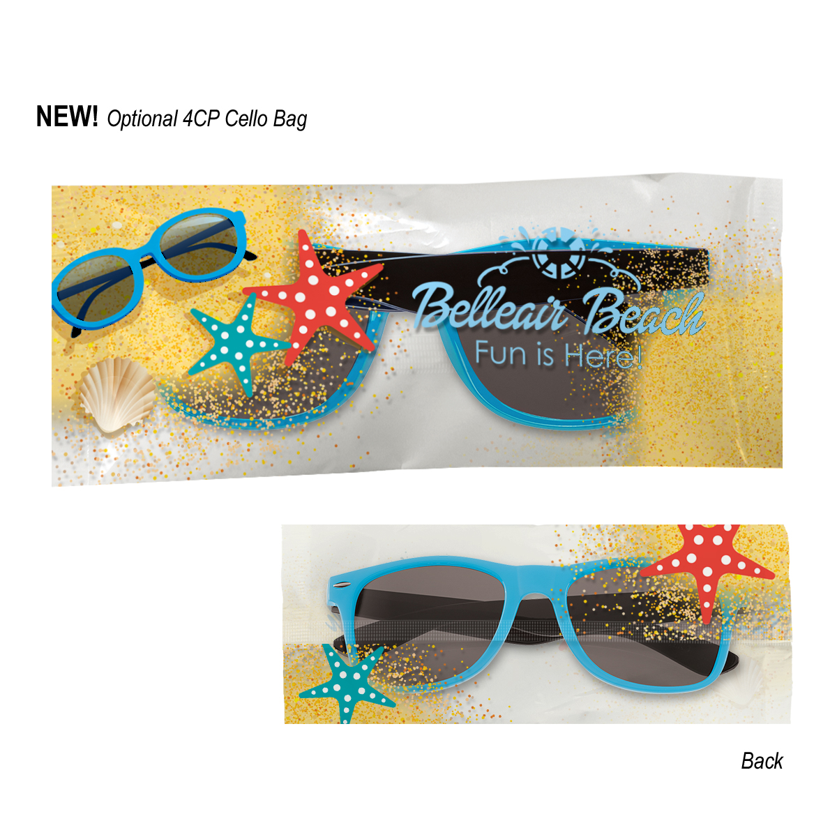 4CP Cello Bag: Add $50.00(G) set up charge plus .30(G) per piece. 4-color process on a white or clear cello bag. Must specify white or clear #4CPCELLO on PO. Choose from one of our stock designs or create your own custom design! 250 piece minimum. Production time for 4-Color Process Cello Bag is 5 to 7 days after proof approval.