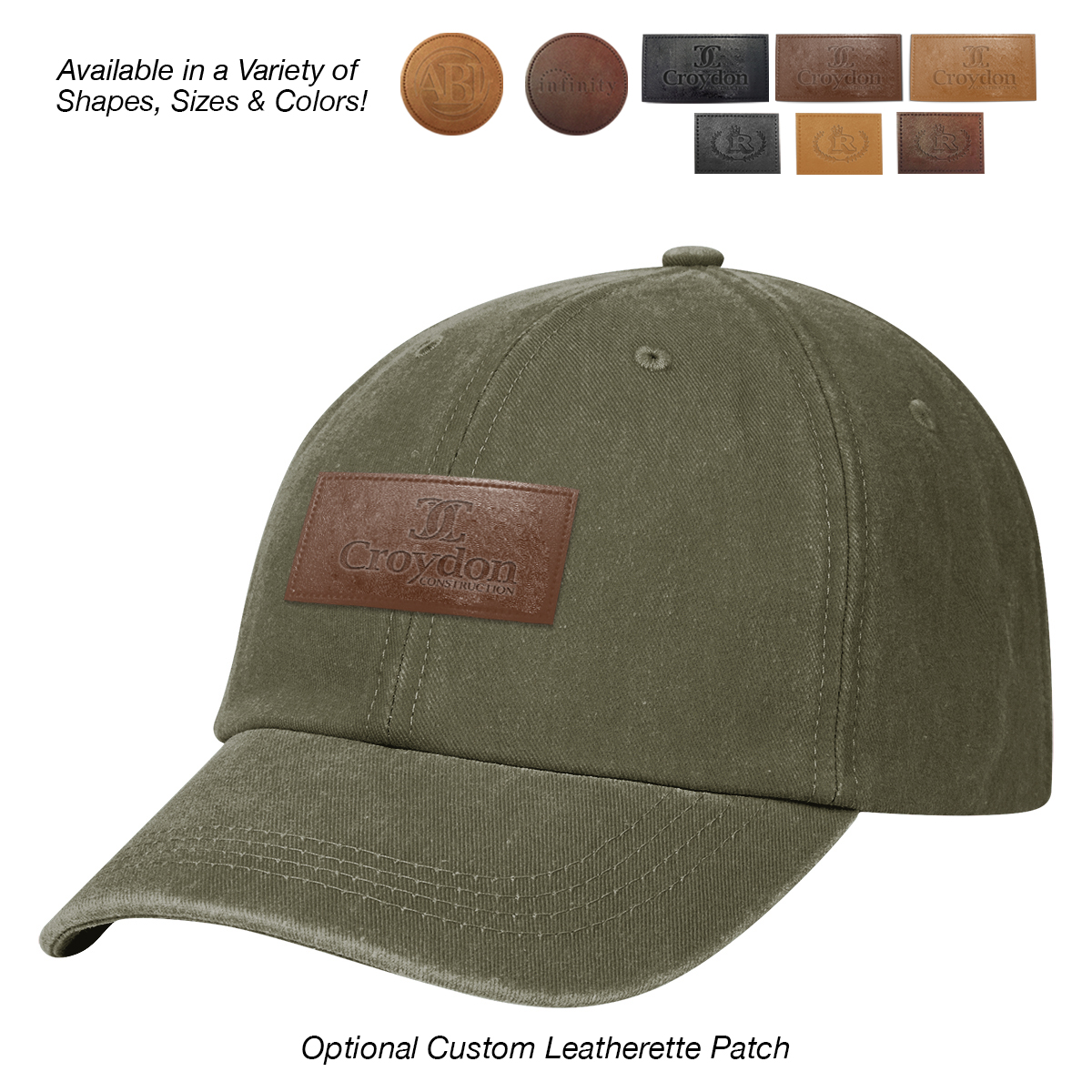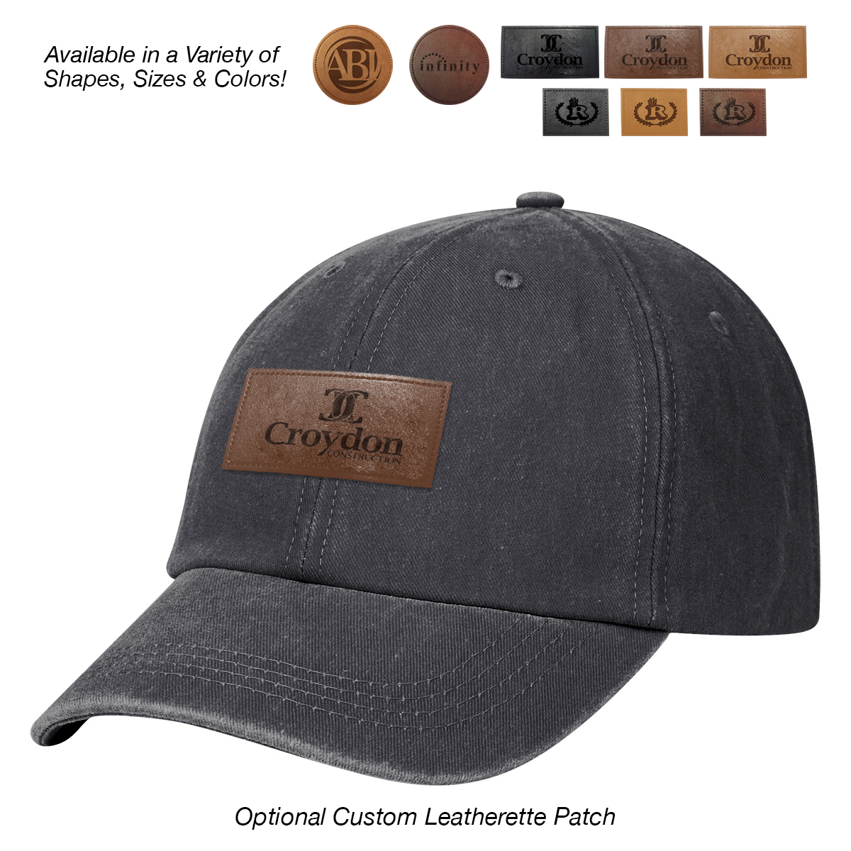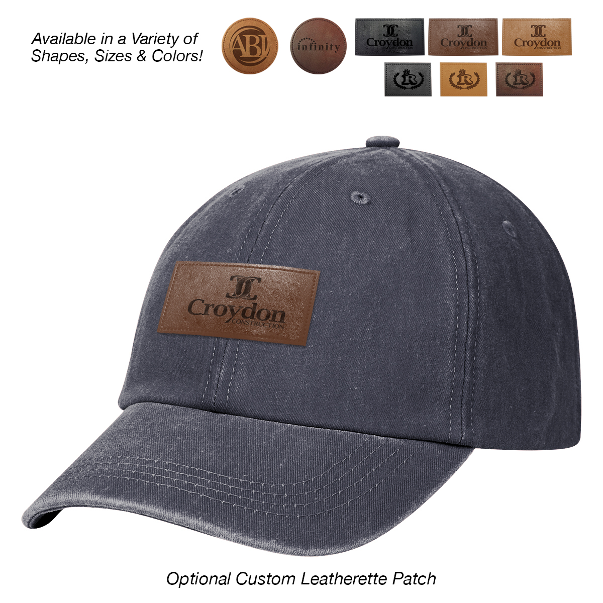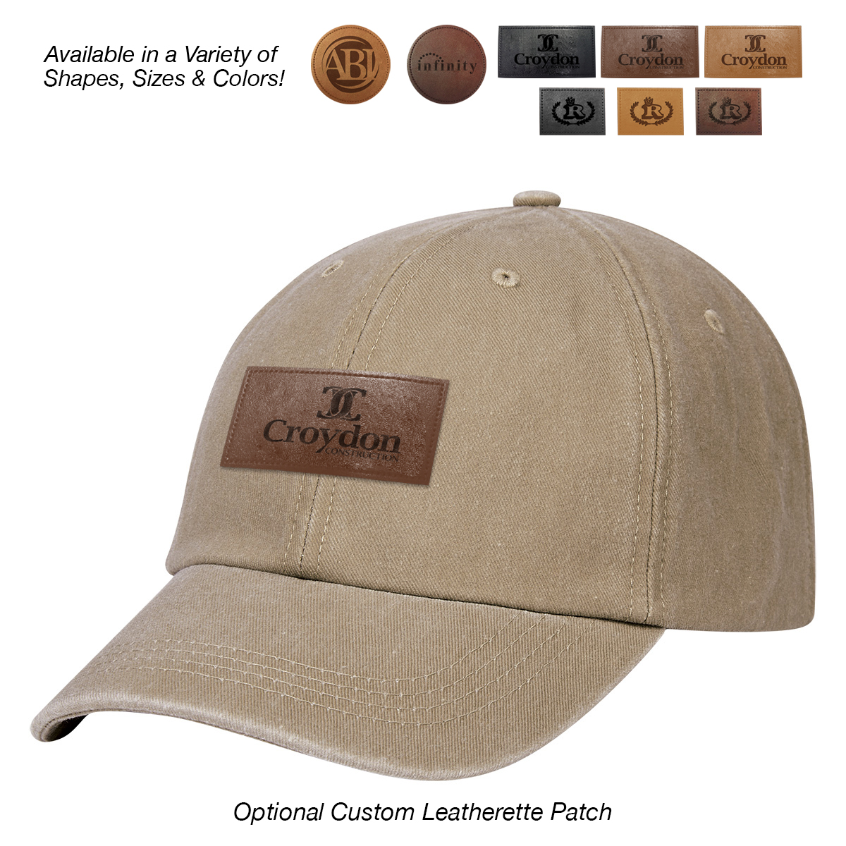 Add to Blank Pricing: Add $100.00(G) set up charge plus $2.50(G) per piece. Patch Shapes: Round, Small Rectangle or Large Rectangle. Patch Colors: Black, Dark Brown or Light Brown. Patch Imprint: Debossed or Laser Engraved. Imprint Area on Patch: Round: 1 ¾" Diameter • Small Rectangle: 1 ¼" W x ¾" H • Large Rectangle: 2 ½" W x 1" H. Must Specify Patch Shape, Color and Imprint Method on PO. Add $50.00(G) to set up charge plus $1.50(G) per piece for Laser Personalization on Patch. Production time is 5-7 days after proof approval. Minimum order is 50 pieces.