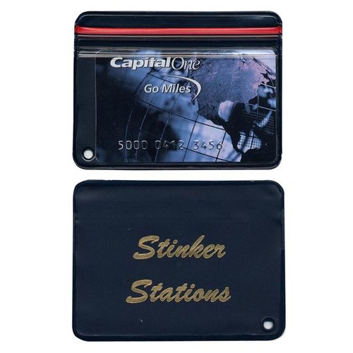 • D.'s in a water proof case with your copy printed on the opaque side.