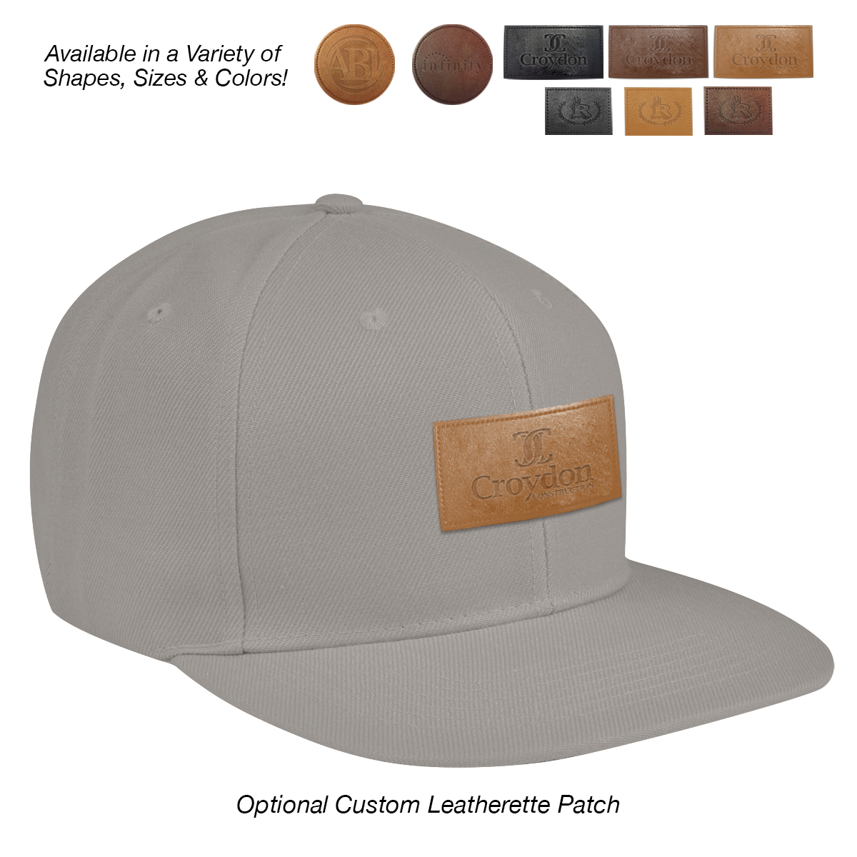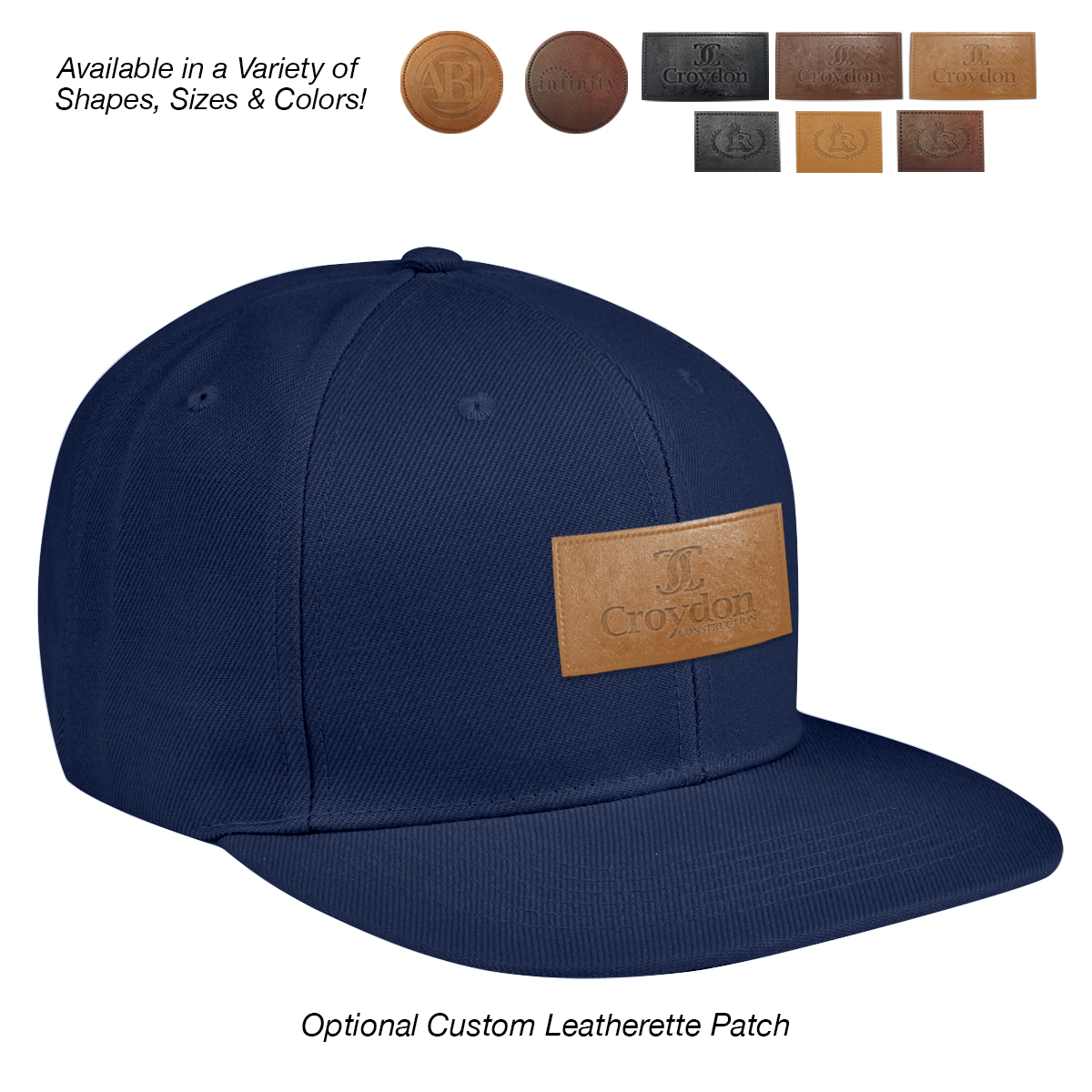 Add to Blank Pricing: Add $100.00(G) set up charge plus $2.50(G) per piece. Patch Shapes: Round, Small Rectangle or Large Rectangle. Patch Colors: Black, Dark Brown or Light Brown. Patch Imprint: Debossed or Laser Engraved. Imprint Area on Patch: Round: 1 ¾" Diameter • Small Rectangle: 1 ¼" W x ¾" H • Large Rectangle: 2 ½" W x 1" H. Must Specify Patch Shape, Color and Imprint Method on PO. Add $50.00(G) to set up charge plus $1.50(G) per piece for Laser Personalization on Patch. Production time is 5-7 days after proof approval. Minimum order is 50 pieces.